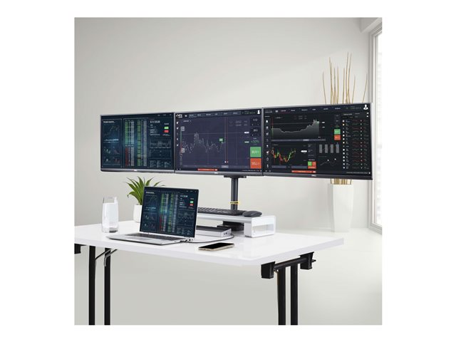 Mounting kit - adjustable arm - for 3 LCD displays - plastic, aluminium, steel - black - screen size: up to 27" - desk-mountable