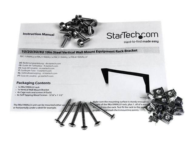 Steel Rack Mount Bracket w/Hardware for 19" Network, Server and Data Equipment (RK219WALLV) - Mounting bracket - wall mountable - black - 2U - 19" - for P/N: SV831DUSBUK