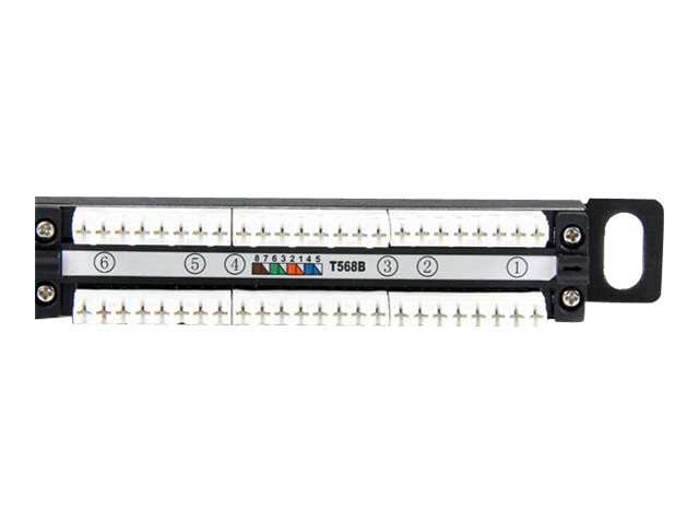 Organize up to 24 Cat5e patch cables using only 0.5U of rack space. The PANELHU24 Rack Mount Cat5e patch panel condenses 24 ports into a 0.5U panel, making it an ideal solution for smaller installations. Color coded for both T568A and T568B wiring, this network patch panel provides the perfect solution for any voice or LAN application and offers dual type IDC termination. For convenience, the port numbers are clearly marked on the front of each RJ45 port, offering a quick and easy way to identify cable runs.
